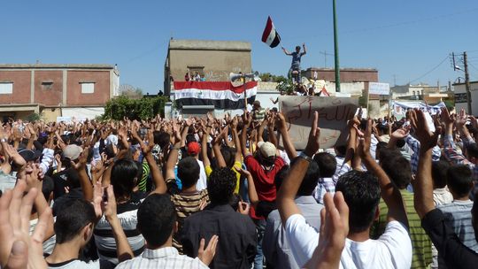 تحولت المظاهرات في حمص إلى نوع من الاحتفالات الشعبية بالحرية, والتي تجري على بُعد أمتار قليلة من القصف اليومي للمدينة عبر البنادق والدبابات.