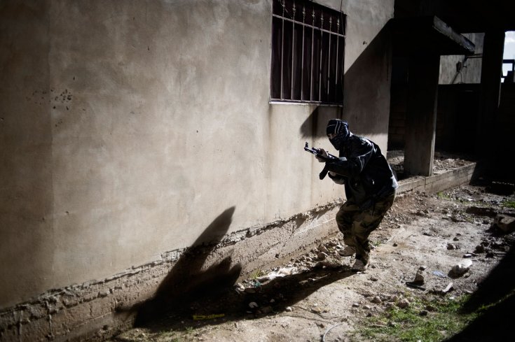 عنصر من عناصر الجيش السوري الحر يشارك في عملية هجومية على الجيش السوري في بلدة القصير، وهي بلدة عدد سكانها 40,000 في جنوب غرب حمص. 27 كانون الثاني/يناير 2012