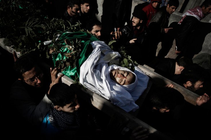 مشيعين بجنازة محمد باكور، وهو طفل يبلغ من العمر 14 عام أصيب على يد قناصة الجيش السوري في بلدة القصير 27 كانون الثاني/يناير 2012