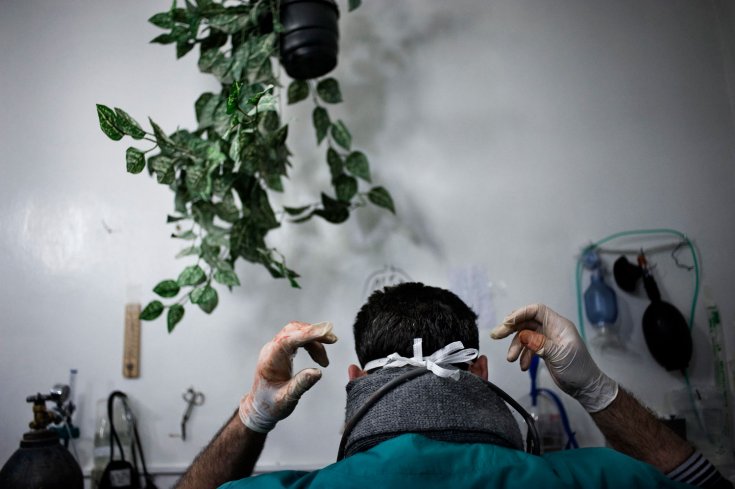 طبيب سوري يحضّر لإجراء عمليات جراحية للجرحى في منزل مستعمل كمشفى في بابا عمرو. 6 شباط/فبراير 2012