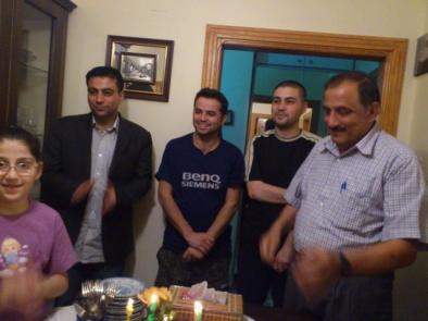الشباب الثلاثة من اليسار إلى اليمين هم: جوان فرسو، بسام الأحمد وأيهم غزول، زملائي في المركز السوري للإعلام وحرية التعبير. تم اعتقالهم في 16-2-2012 من قبل المخابرات الجوية ثم من قبل الفرقة الرابعة التابعة لماهر الأسد، وتم الافراج عنهم في 12-5-2012. في هذه الصورة: احتفال عائلي بمناسبة إطلاق سراحهم.