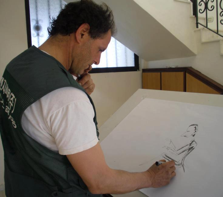 Mhyd is a Syrian fine artist from Qosair in the Homs countryside who loved the plastic arts and oil painting. With the advent of the Syrian revolution he turned to painting the banners for the demonstrations.
