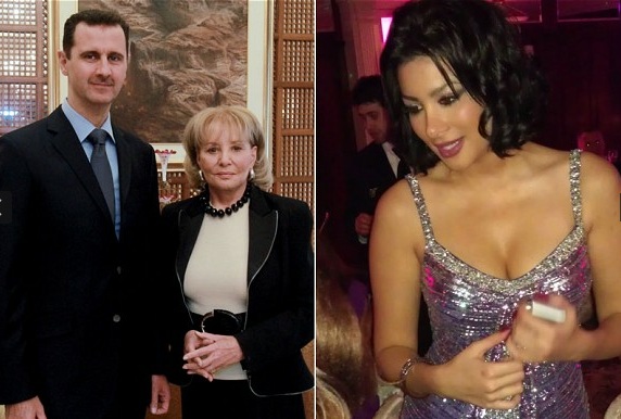 الرئيس السوري بشار الأسد مع باربرا والترز في الصورة اليسارية وشهرزاد جعفري في الصوري اليمينية.