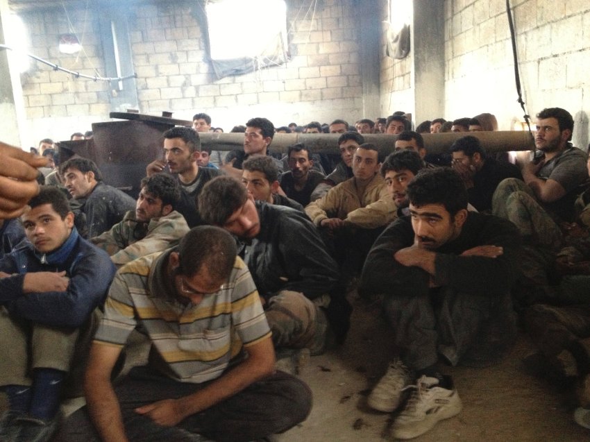 Syrian army soldiers loyal to Syria’s President Bashar al Assad, whom activists say had been captured this week are seen in the northwestern province of Idlib October 11, 2012. Opposition activists said on Friday that rebels captured around 400 soldiers and loyalist militias this week in Western Jisr al-Shoghour, a hilly agricultural area where fighting between Assad?s foces and the opposition has been raging this week. The reports could not be independently verified but they indicate an intensifying conflict, with the daily body counts of the past few weeks far exceeding previous months. Picture taken October 11, 2012. REUTERS/Shaam News Network/Handout (SYRIA – Tags: POLITICS CIVIL UNREST) FOR EDITORIAL USE ONLY. NOT FOR SALE FOR MARKETING OR ADVERTISING CAMPAIGNS. THIS IMAGE HAS BEEN SUPPLIED BY A THIRD PARTY. IT IS DISTRIBUTED, EXACTLY AS RECEIVED BY REUTERS, AS A SERVICE TO CLIENTS