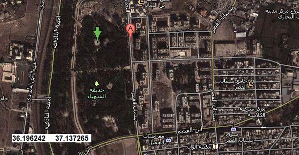 The location is illustrated better in the picture below (the green arrow) and the following link: https://maps.google.com.qa/maps?q=36.186284,37.142426&hl=ar&ll=36.186522,37.142453&spn=0.000933,0.001725&num=1&t=h&z=19