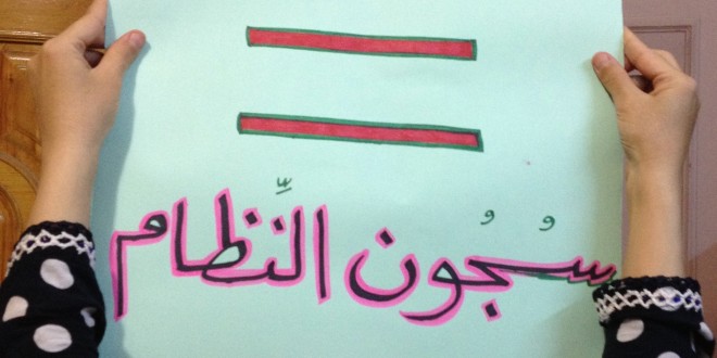 The last sign provoked one of the guards and he yelled “you want all the detainees? They all are drunkards, thieves who break their fast [during the Muslim fasting month of Ramadan]” and when she answered that she wants the honest ones, he replied from behind the mask “there are no honest detainees with us.” Suad points out that the oldest among the guards is not more than seventeen years old.