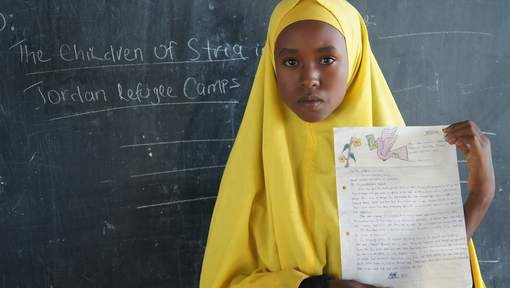 Lojain is three and a half years old… she loves her school very much … Maybe she feels like it is her only window to the world outside the realm of bombings and destruction. There she meets her teachers and her friends … and expresses her views freely, despite her young age …
